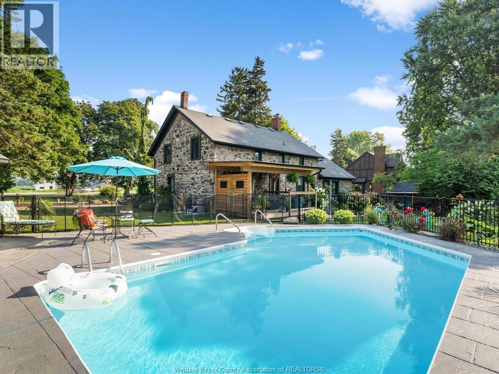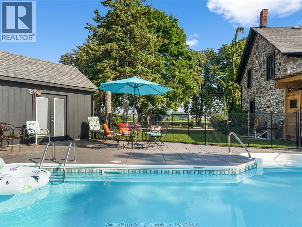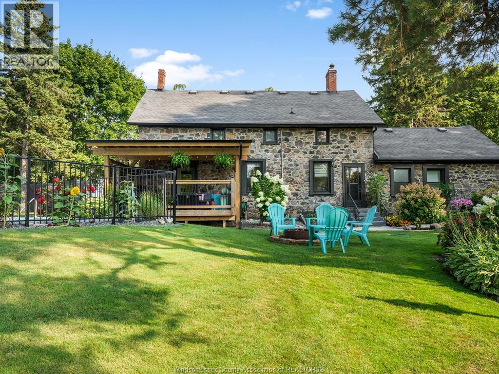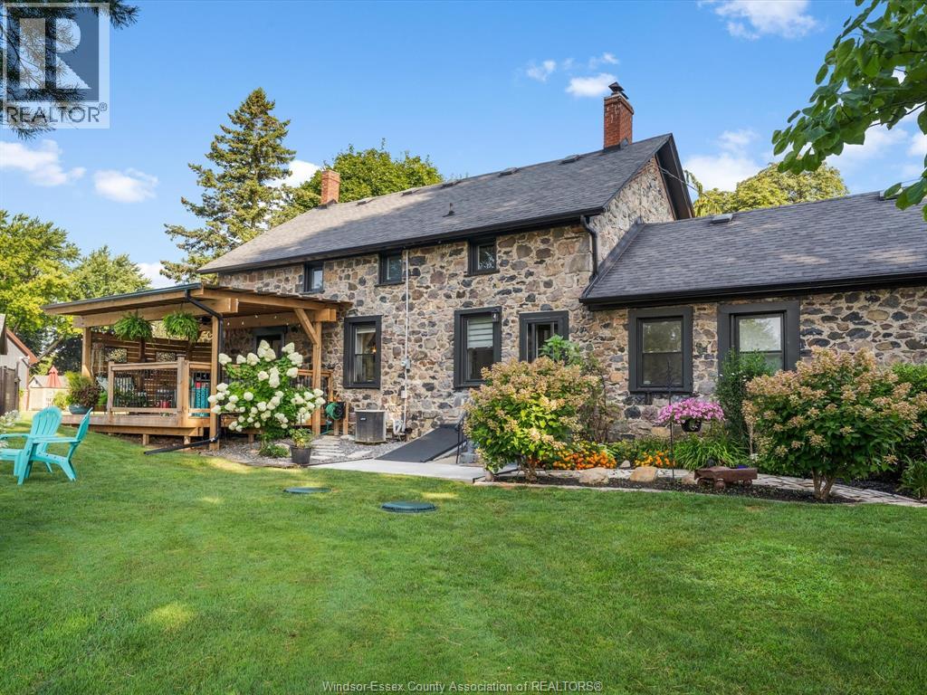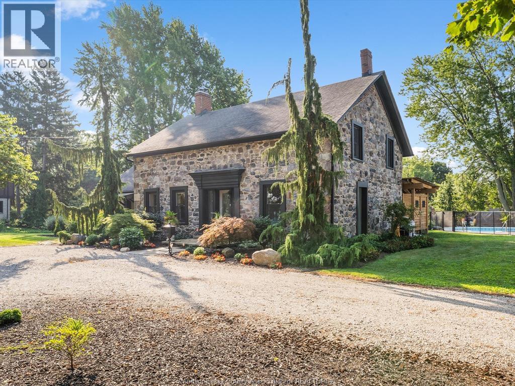 Step into history with this beautifully reimagined 1800s fieldstone home, set on a full acre of treed land in one of Kingsville’s most sought after neighbourhoods. Featuring 5 bedrooms and 2 bathrooms, this property blends timeless character with modern updates. The main floor offers a spacious primary suite, a large dining room, and a bright living room with a gas fireplace and floor to ceiling windows. Original hardwood floors paired with updated ceramic tile and 2 foot thick fieldstone walls make this home both elegant and soundproof. The kitchen, fully updated in 2023, seamlessly combines historic charm with contemporary style. Upstairs, four additional bedrooms and a full bath provide plenty of space for family or guests. Outside, relax on the private deck, swim in the inground pool, or enjoy the expansive yard surrounded by mature trees. With two separate entrances to the property and updates including furnace (2023), electrical panel (2025), windows & doors (2022), gazebo & shed (2024), and concrete (2023), this home is truly move-in ready. A rare chance to own a piece of Kingsville’s history, modernized for today’s lifestyle. Call our team today to book your private showing! (id:4555)